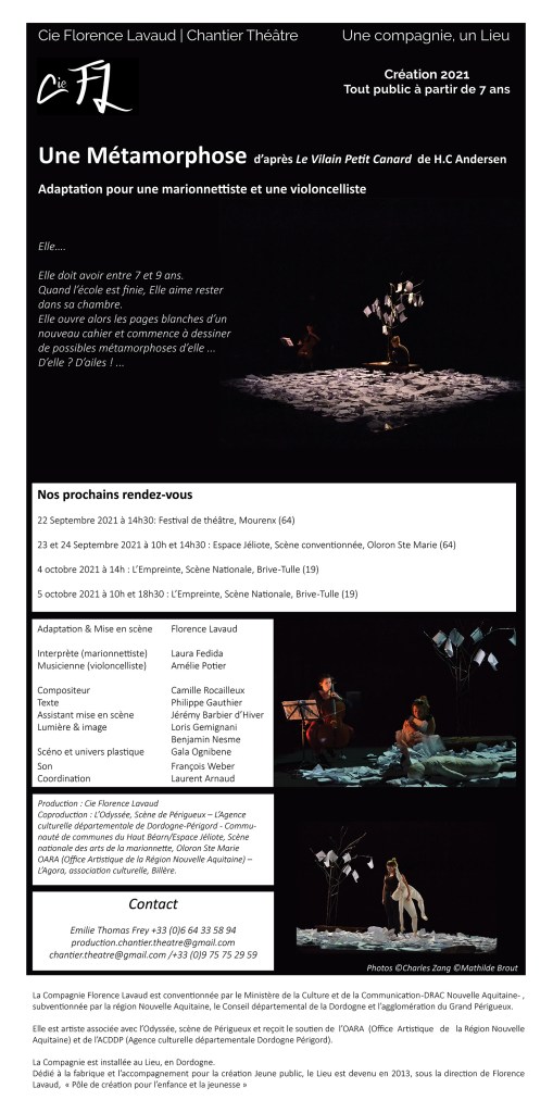 Une Métamorphose est une création théâtrale originale librement inspirée du Vilain Petit Canard de H.C Andersen.